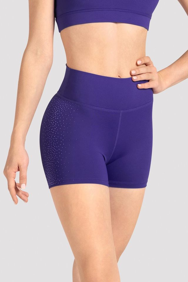 Our Ladies Mirella Celeste High Waist Printed Shorts feature a high wide waist, short leg length with soft texture dot print along the sides. Our Mirella Celeste Collection by BLOCH pairs elegant dancewear with versatile separates. Inspired by the night sky, each piece features a soft textured dot print set against deep, luminous colour.